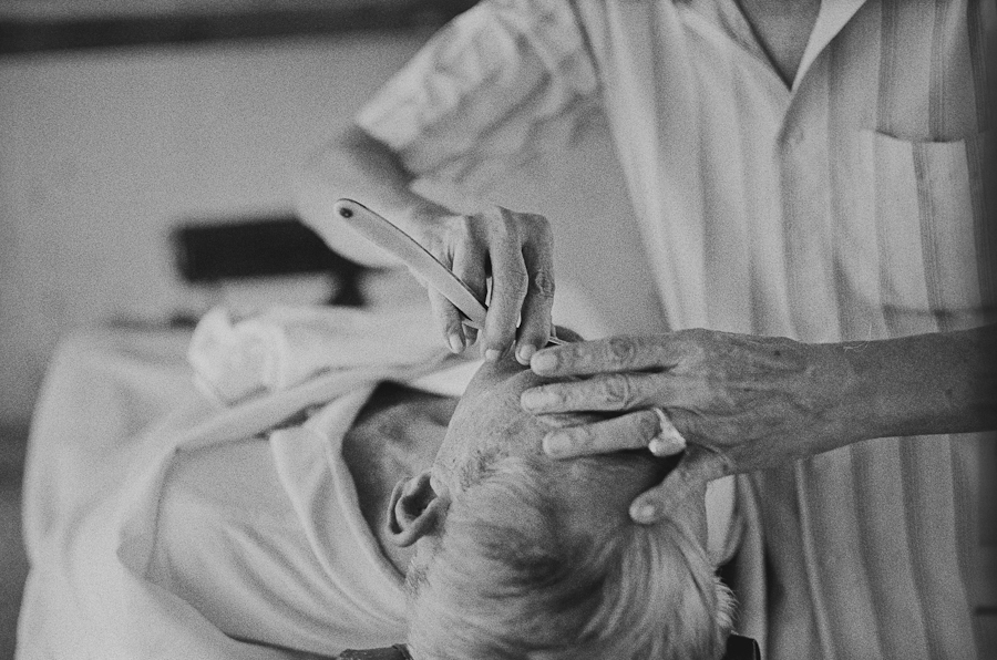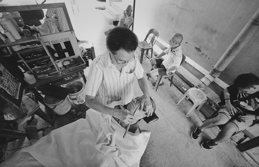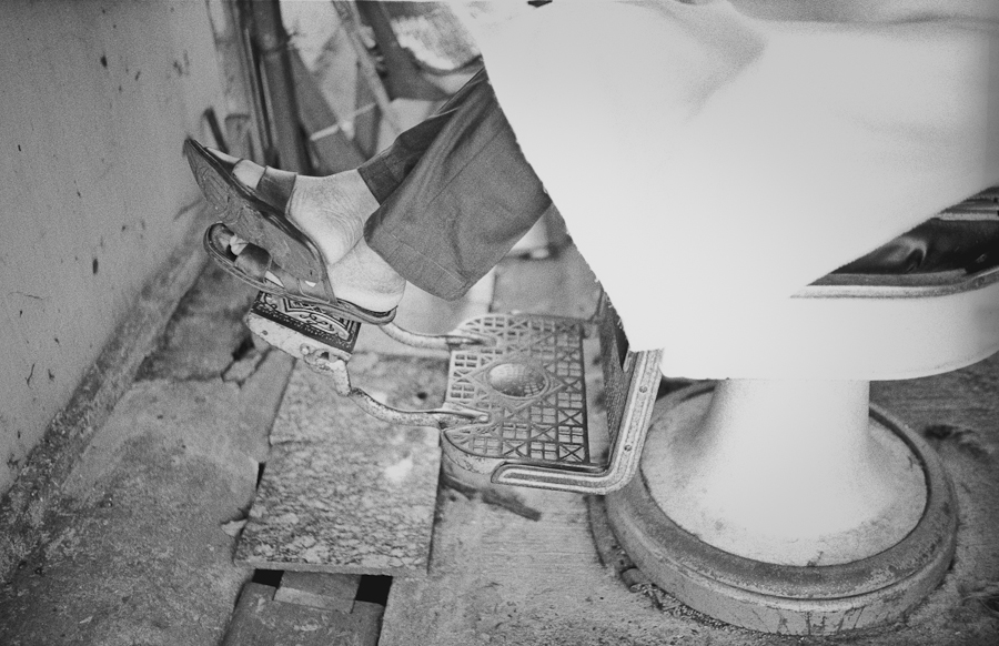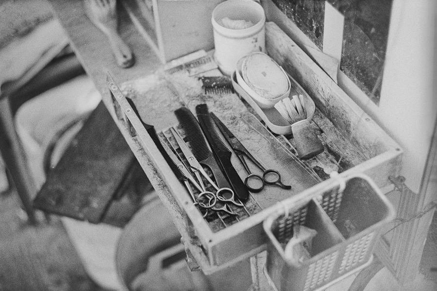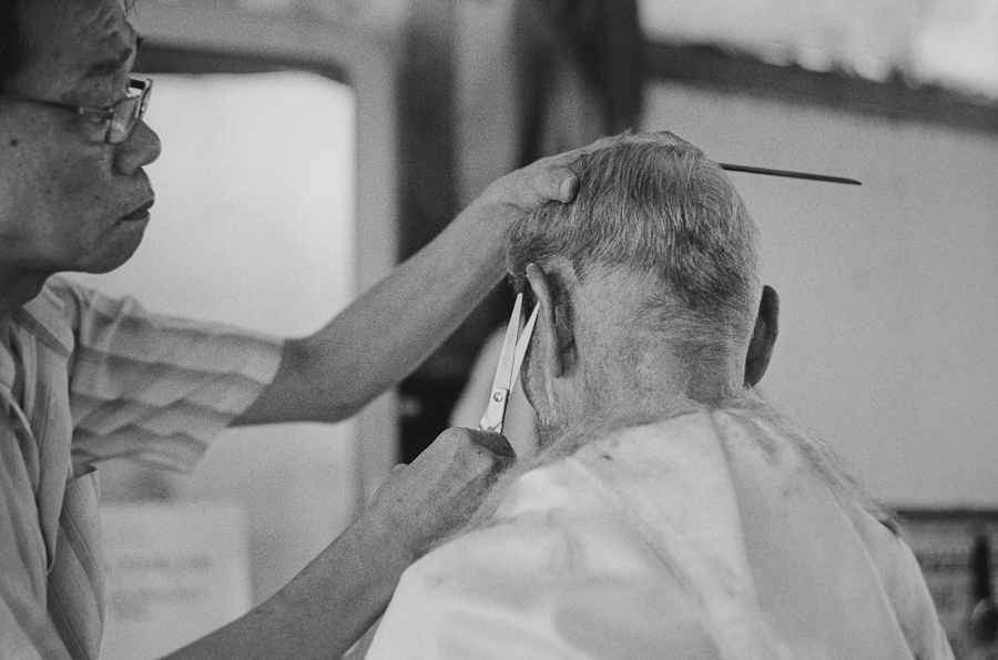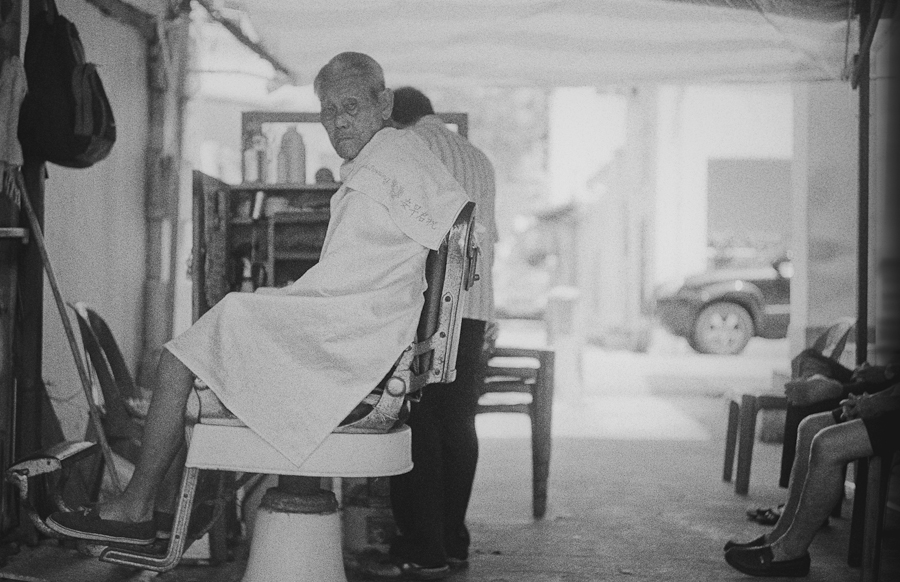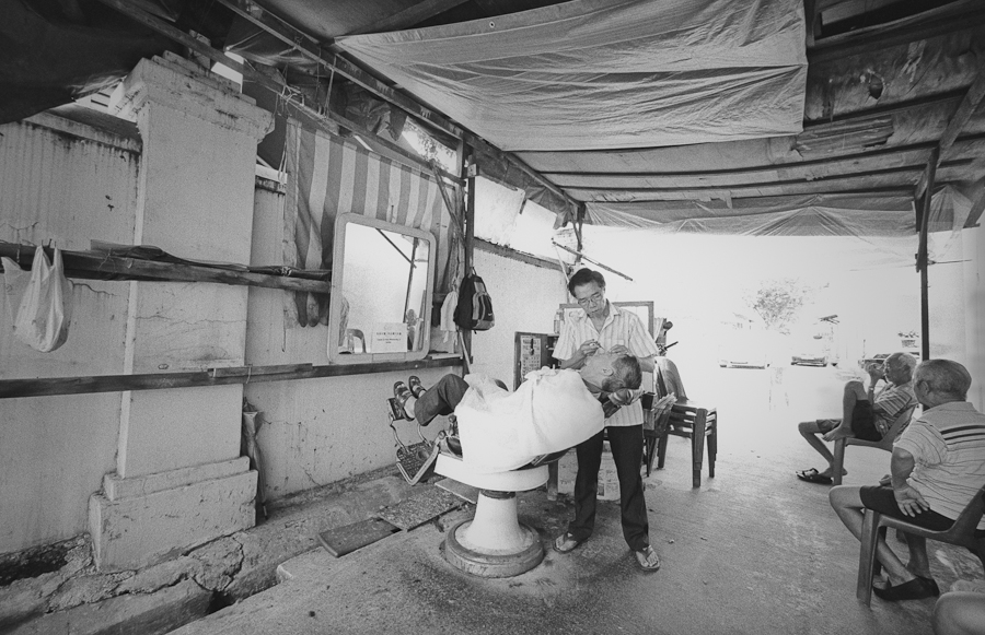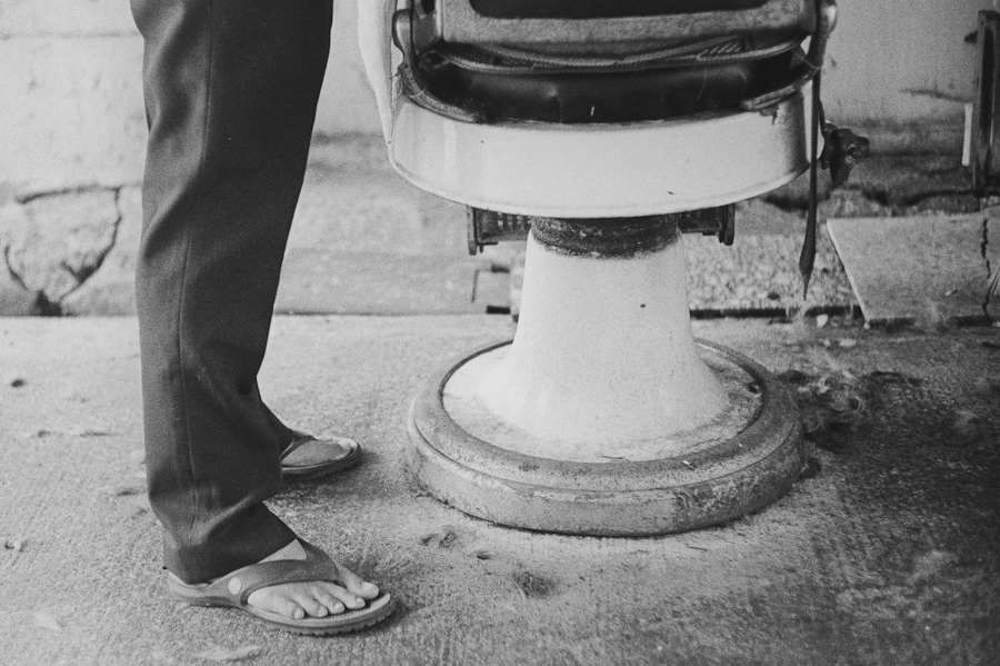 Back street barbers are an interesting sight indeed. Just a lone rusty barber’s chair, sheltered from the elements by a canvas sheet.