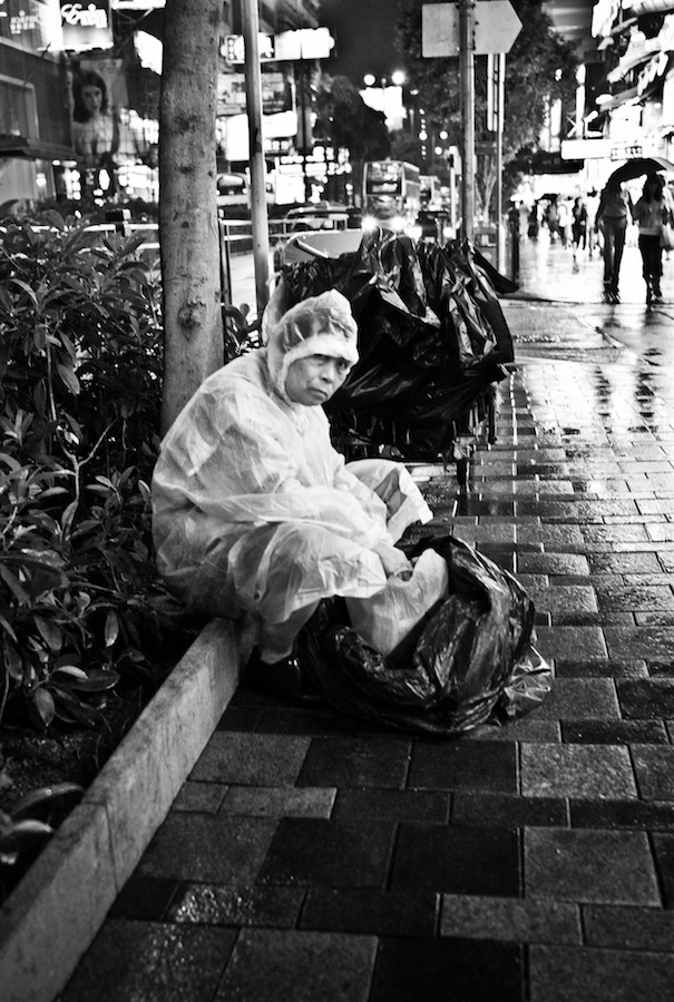 In Hong Kong, as neon signs are in abundance, do shoot it with varying techniques. Also, i experienced shooting in the rain, evident in the shot of the man in raincoat. I was holding my camera in one hand and an umbrella on the other.